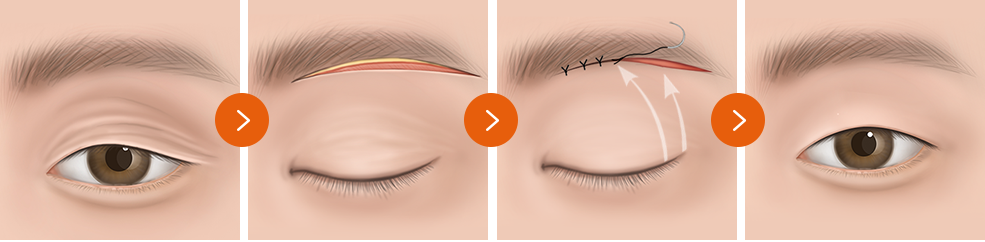엑소메디 눈썹거상술은 눈썹아래의 늘어진 피부를 절제하여 시원하고 자연스러운 눈매를 살려줍니다.