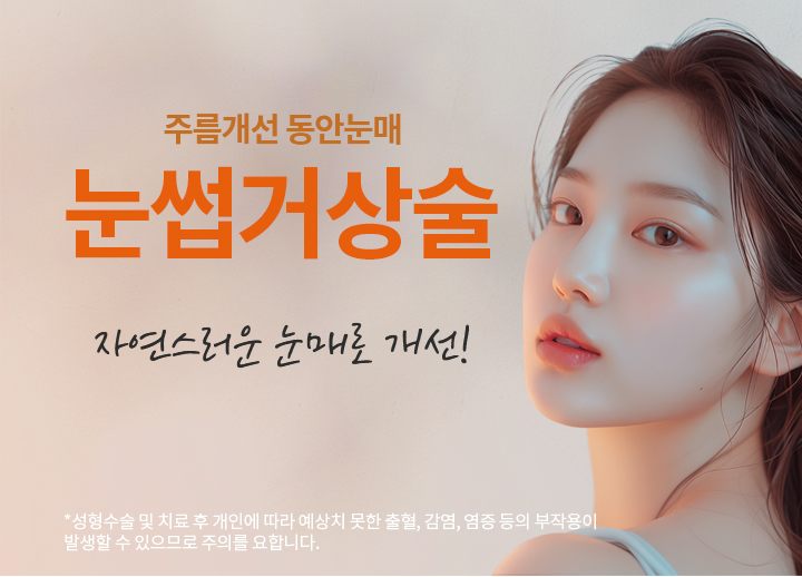 쌍꺼풀의 변화없이 눈매변화가 가능하며, 흉터 또한 눈썹에 가려져 눈에 띄지 않습니다.